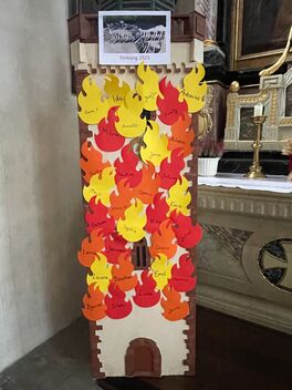 In der Kirche Johannesberg ist ab sofort eine Stempelstelle für Jakobuspilger zu finden. Pilger, die auf dem Weg Richtung Würzburg oder Frankfurt sind, haben oft ein Stempel-buch dabei, um die angelaufenen Orte nachzuweisen. Nun können sich alle Pilger während der Öffnungszeiten der Kirche selbstständig bedienen und sind unabhängig vom Pfarrbüro. Es werden oft Teilstücke gelaufen und später in Etappen fortgesetzt. Alle mit der Muschel gekennzeichneten Wege münden in Santiago de Compostela am Grab des Heiligen Apostels Jakobus. Die Entfernung beträgt von hier ca. 3000 km.